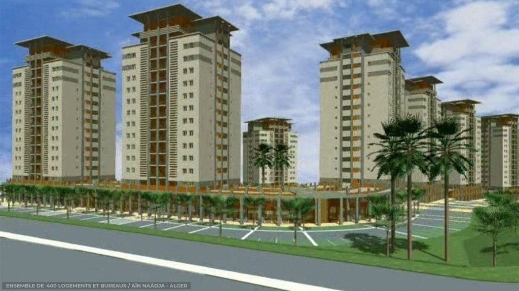LOGEMENTSPROMOTION IMMOBILIÈREBEN AKNOUN – ALGERPROJET 500 LOGEMENTSTIPAZA – ALGÉRIEPROMOTION IMMOBILIÈREBOUMATI EL HARRACH – ALGERPROMOTION IMMOBILIÈREHAI EL BADR KOUBA – ALGERPROJET 400 LOGEMENTSAIN BENIANE – ALGERENSEMBLE DE 400 LOGEMENTS ET BUREAUXAÏN NAÂDJA – ALGER
